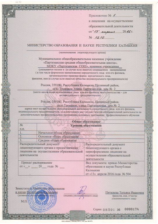 Адрес местонахождения образовательной организации* 359180, Калмыкия Респ, Целинный р-н, Троицкое с, Партизанская ул, дом № 2